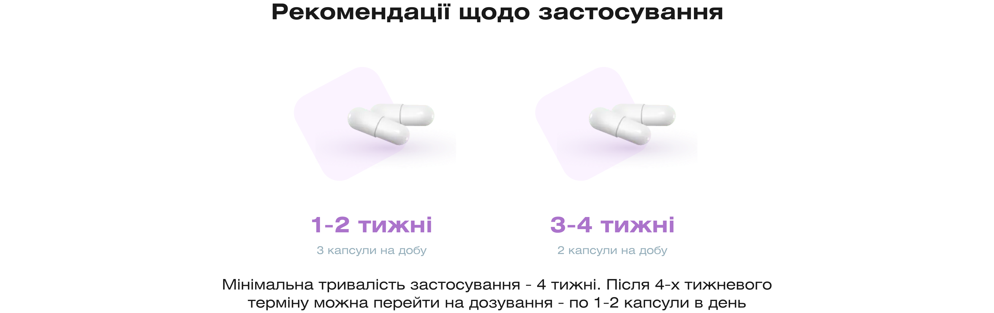 Після 4-х тижневого терміну можна перейти на дозування – по 1–2 капсули в день.